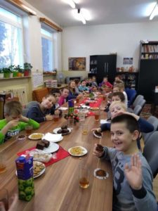 Pre naše prijímateľky mali pripravené krásne vianočné vystúpenie v nádherných ľudových krojoch. Na oplátku im naše dievčatá predviedli zase svoje vianočné vystúpenie. Všetci spoločne strávili príjemné dopoludnie.