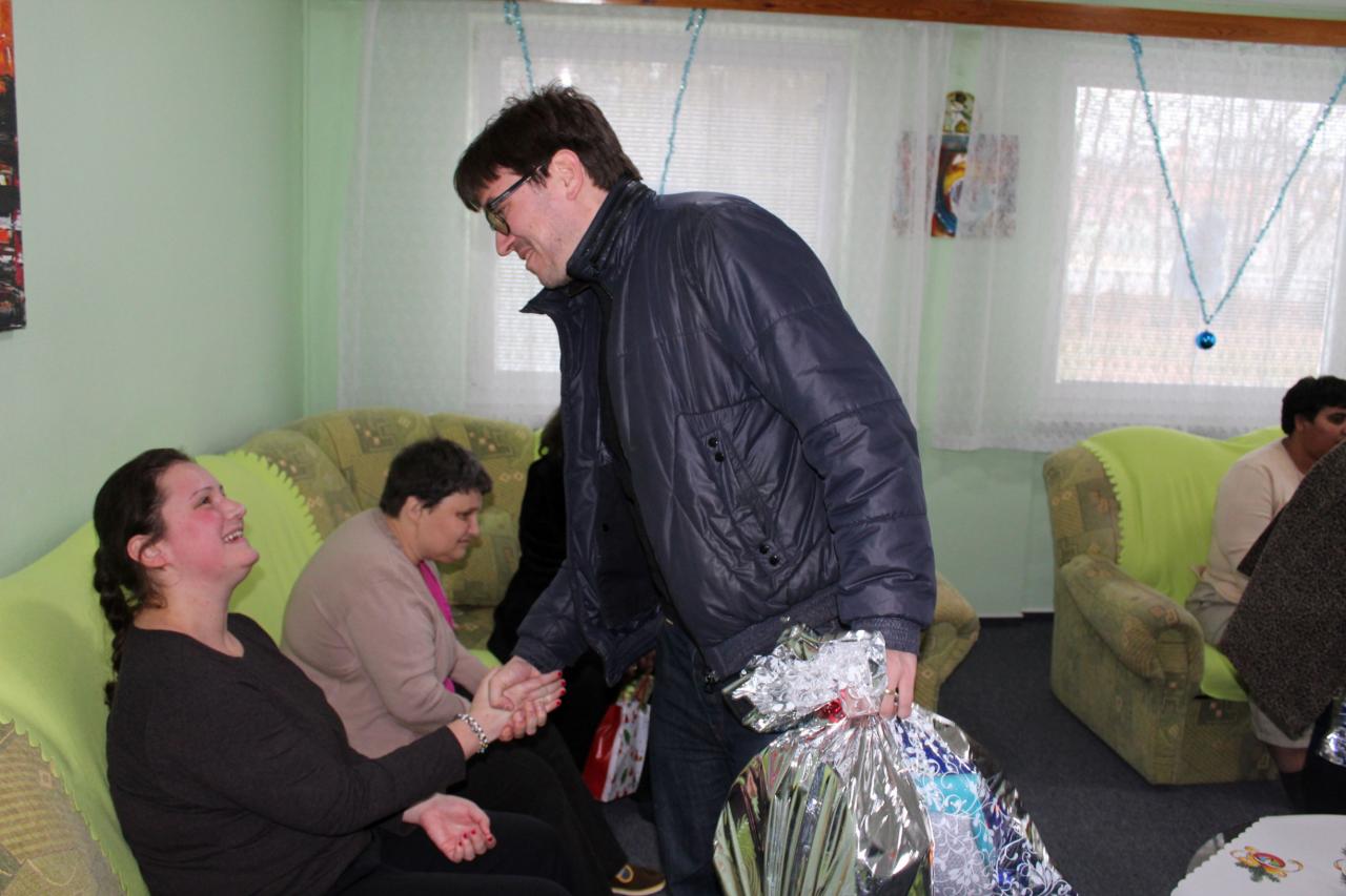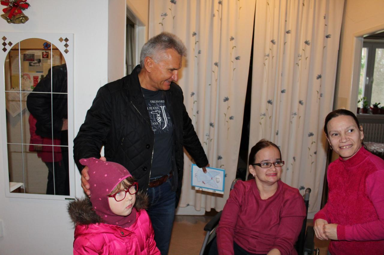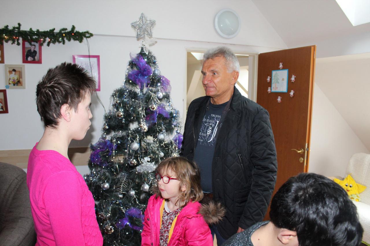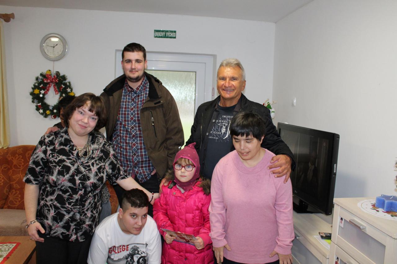 Návšteva pána Krajčíka s rodinou, ktorý priniesol prijímateľkám i zamestnancom vianočné darčeky.