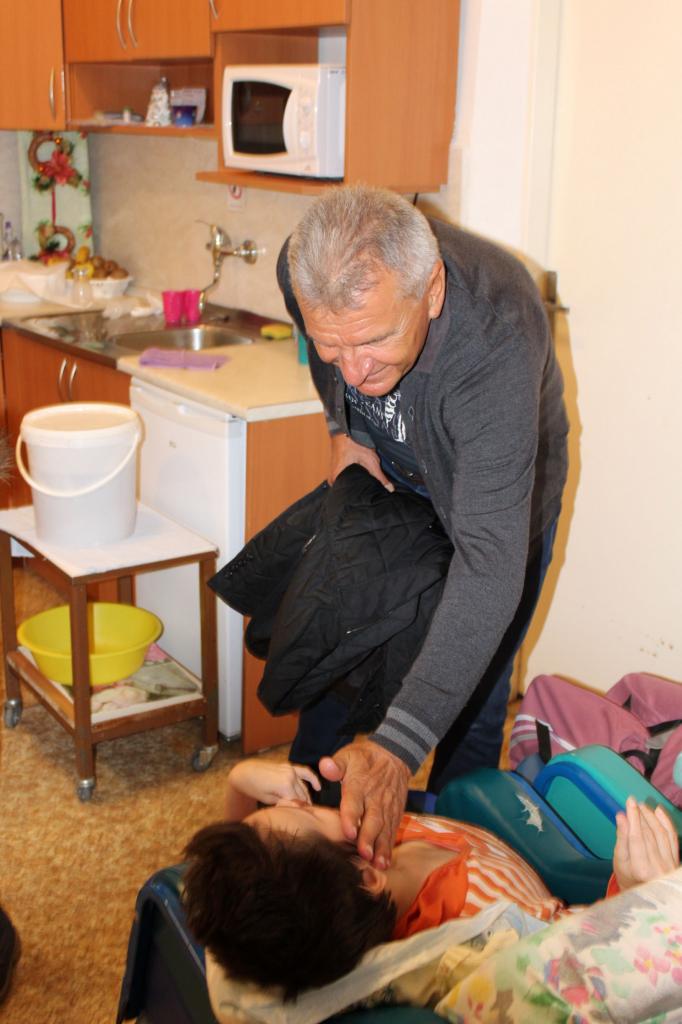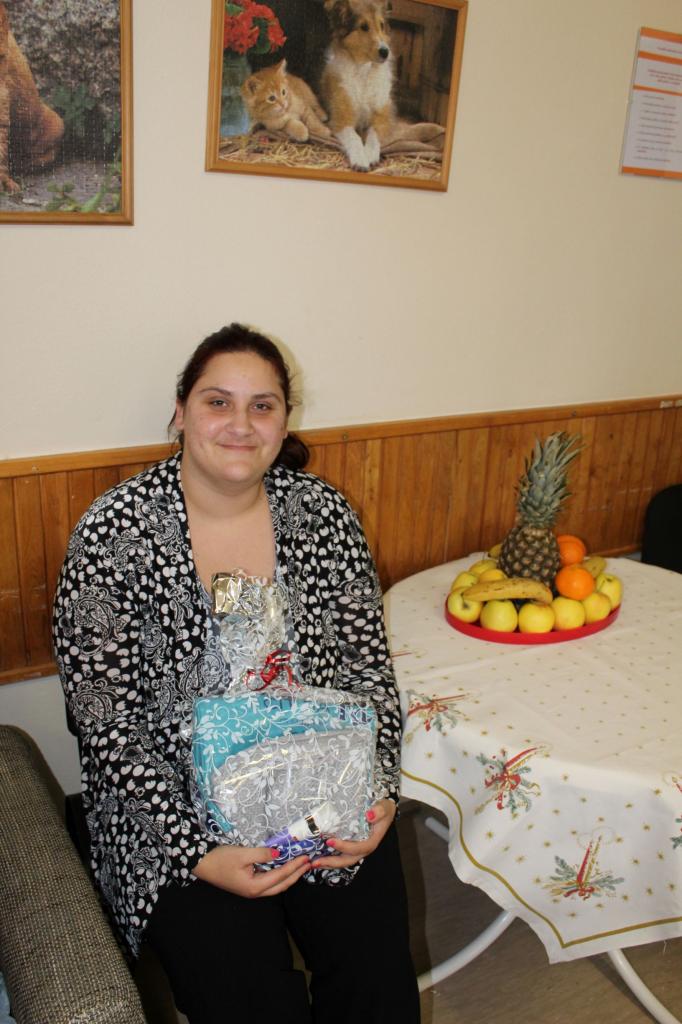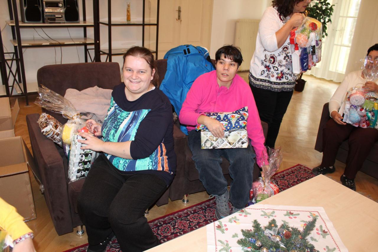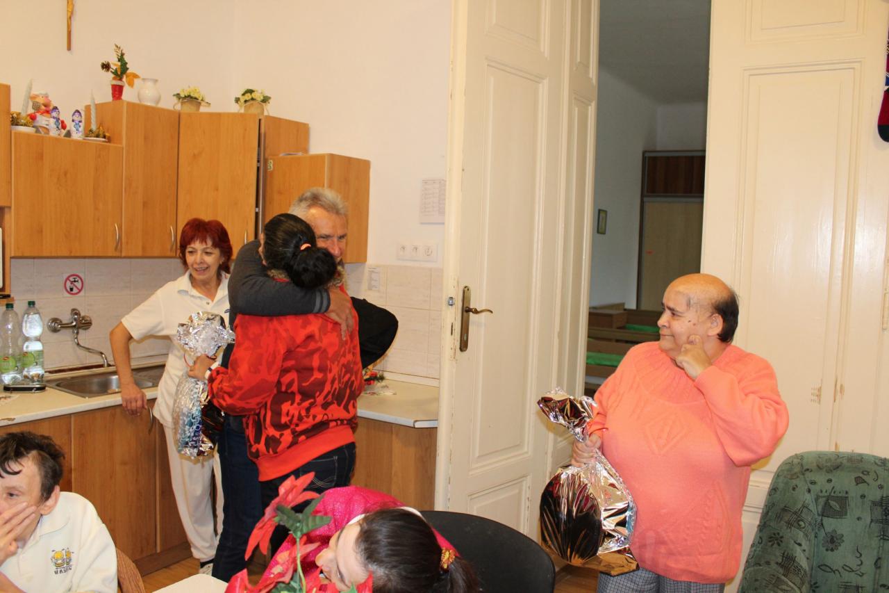 Návšteva pána Krajčíka s rodinou, ktorý priniesol prijímateľkám i zamestnancom vianočné darčeky.